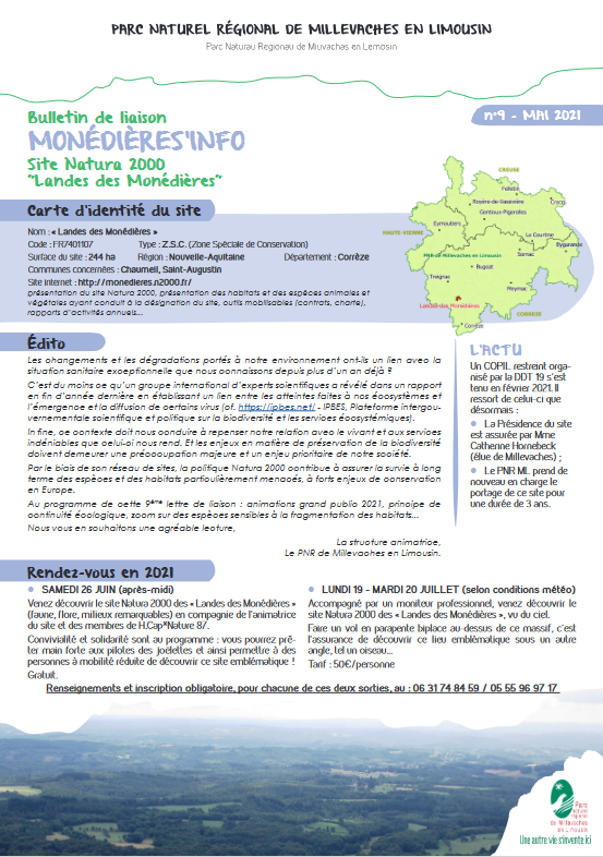 Les lettres de liaison ont pour objet d'informer et de sensibiliser le grand public aux enjeux du site et de les informer des réalisations effectuées dans le cadre de l'animation du site.